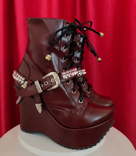 Coturno Plataforma Grunge Punk Wine | Coturno Vinho 11cm
