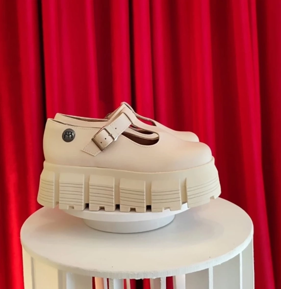 Plataforma Nude | Courino Almofadado e Bico Redondo